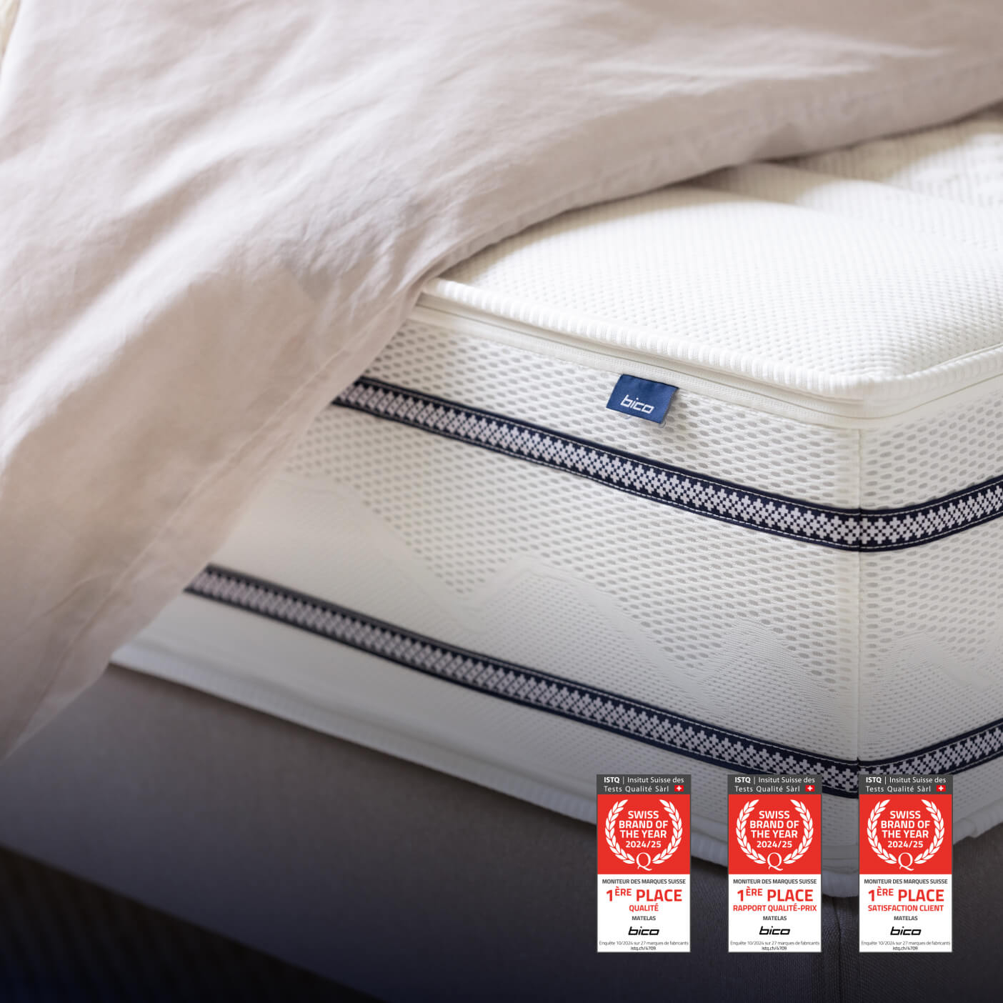 Voilà notre credo, et nous souhaitons que toute la Suisse en profite. Notre spécificité: un confort de sommeil différencié alliant technologies de matelas les plus modernes, Swissness, qualité et durabilité. Nous sommes donc d’autant plus heureux d’avoir été élus «Marque suisse de l’année 2024/25» plusieurs années de suite, et d’avoir remporté le test dans toutes les catégories «Rapport qualité/prix», «Qualité» et «Satisfaction de la clientèle». Nous y voyons une fois de plus la confirmation que nous sommes sur la bonne voie, et ce, depuis 1861. Faites-en vous-même l’expérience, car il y a plus important encore que cette distinction, à savoir votre santé et votre sommeil.