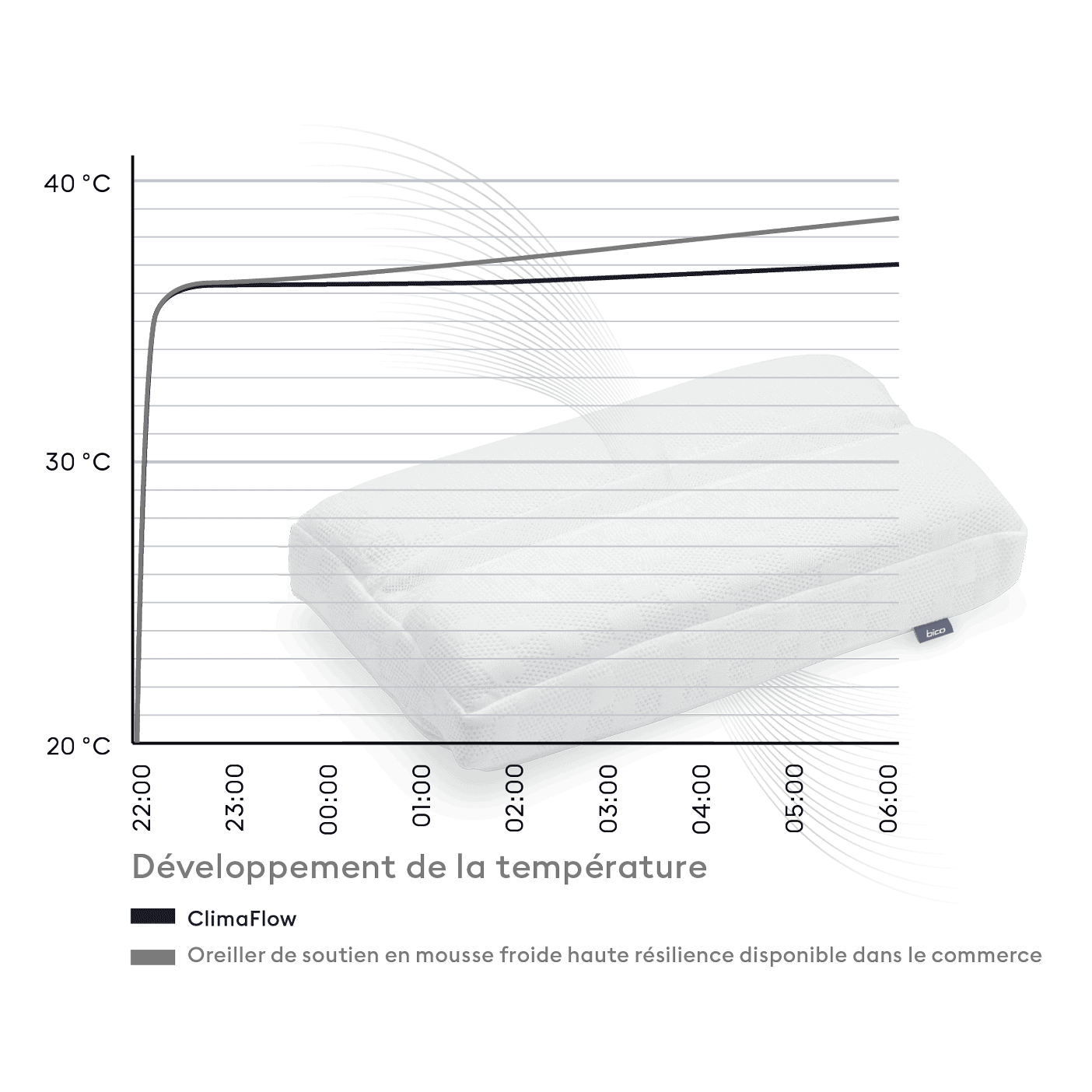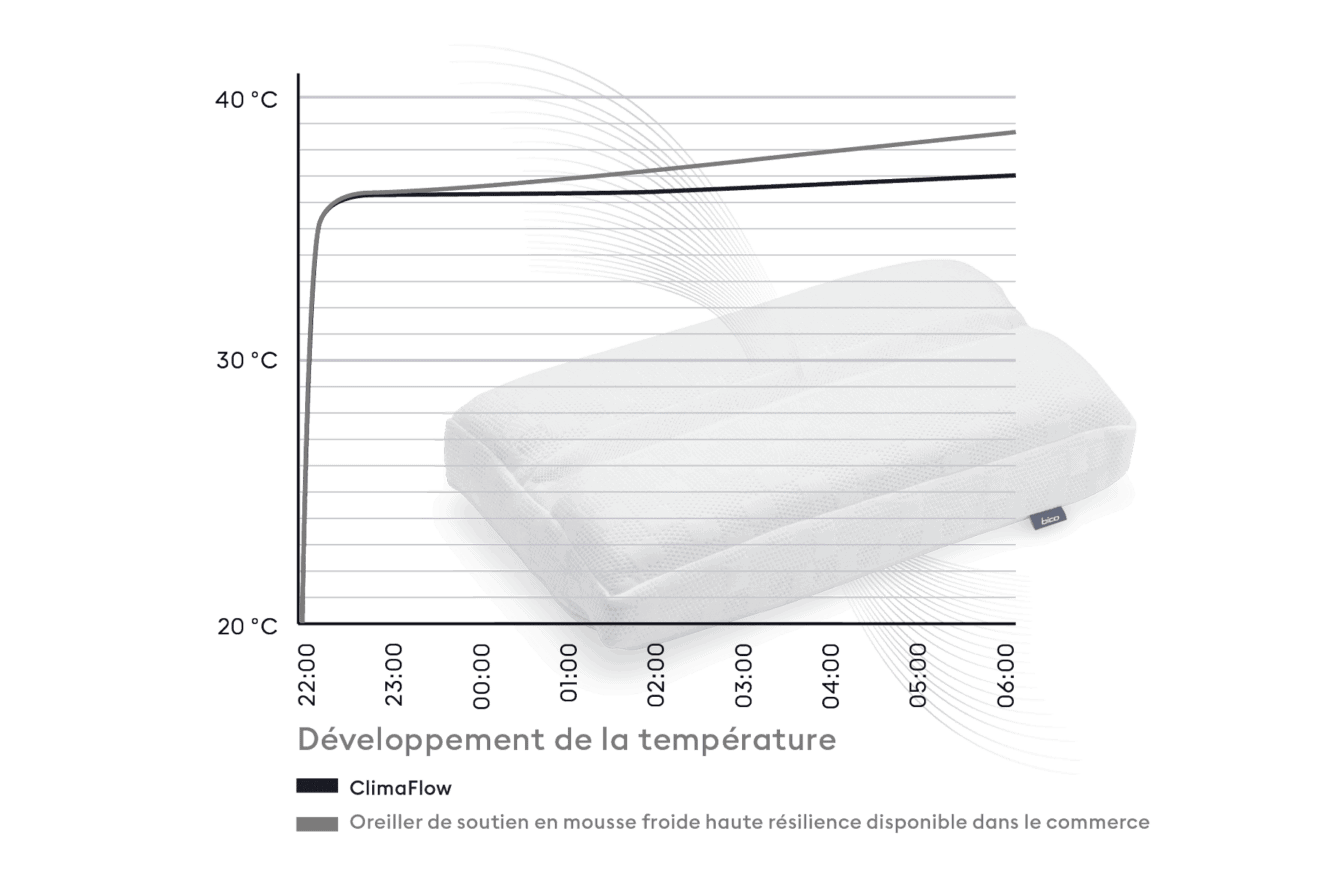 - Équilibre optimal de l’humidité et de la température grâce à la technologie AirFlow avec zone climatique unique dans l’oreiller