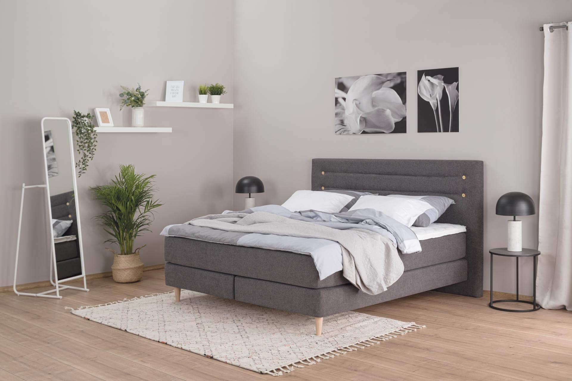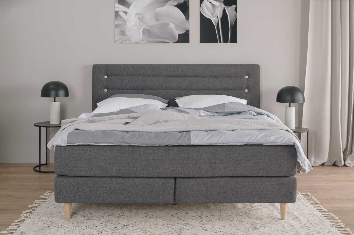 Letto boxspring moderno dal design essenziale per un buon sonno.