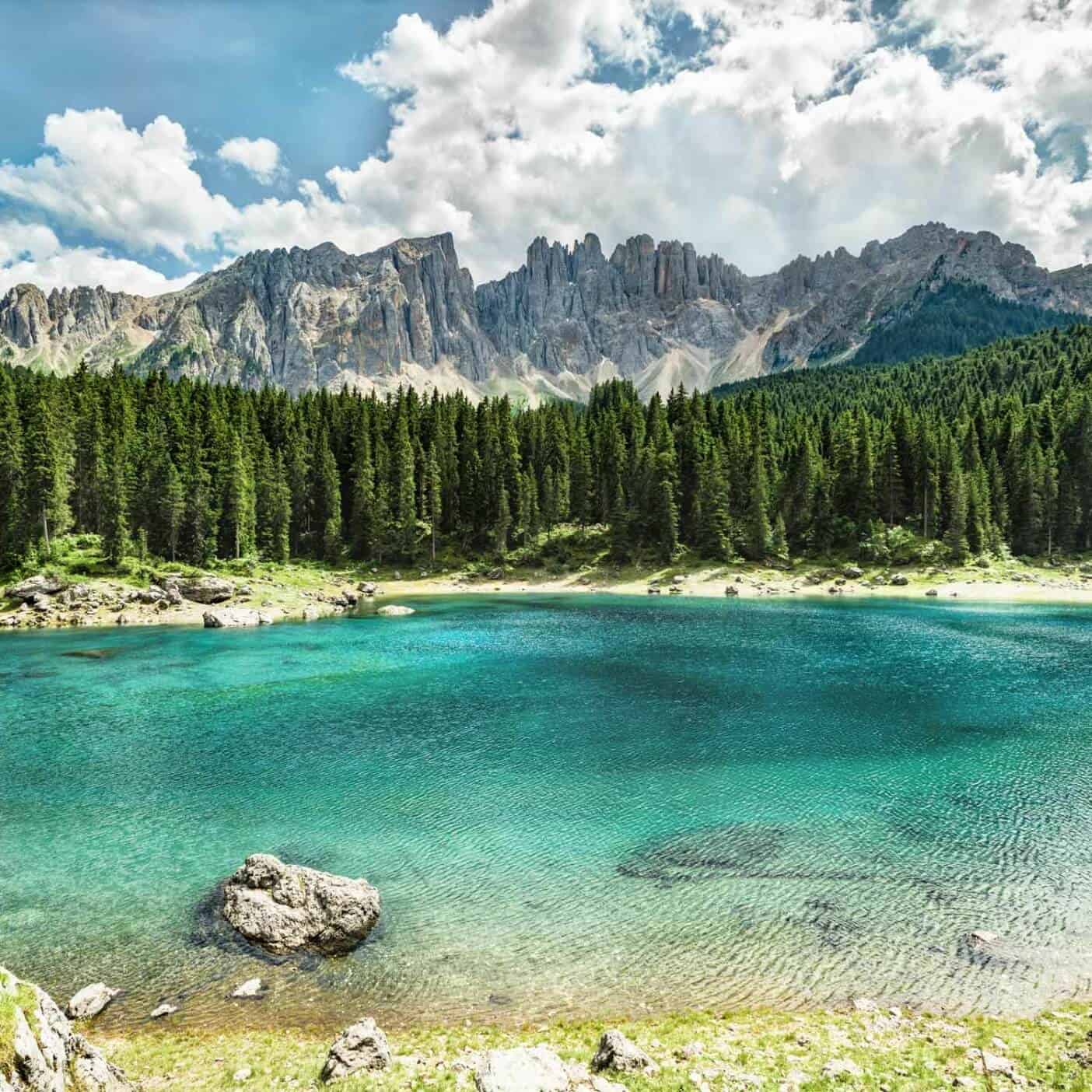 Pregiata biancheria da letto in satin di cotone nei colori di un lago glaciale.