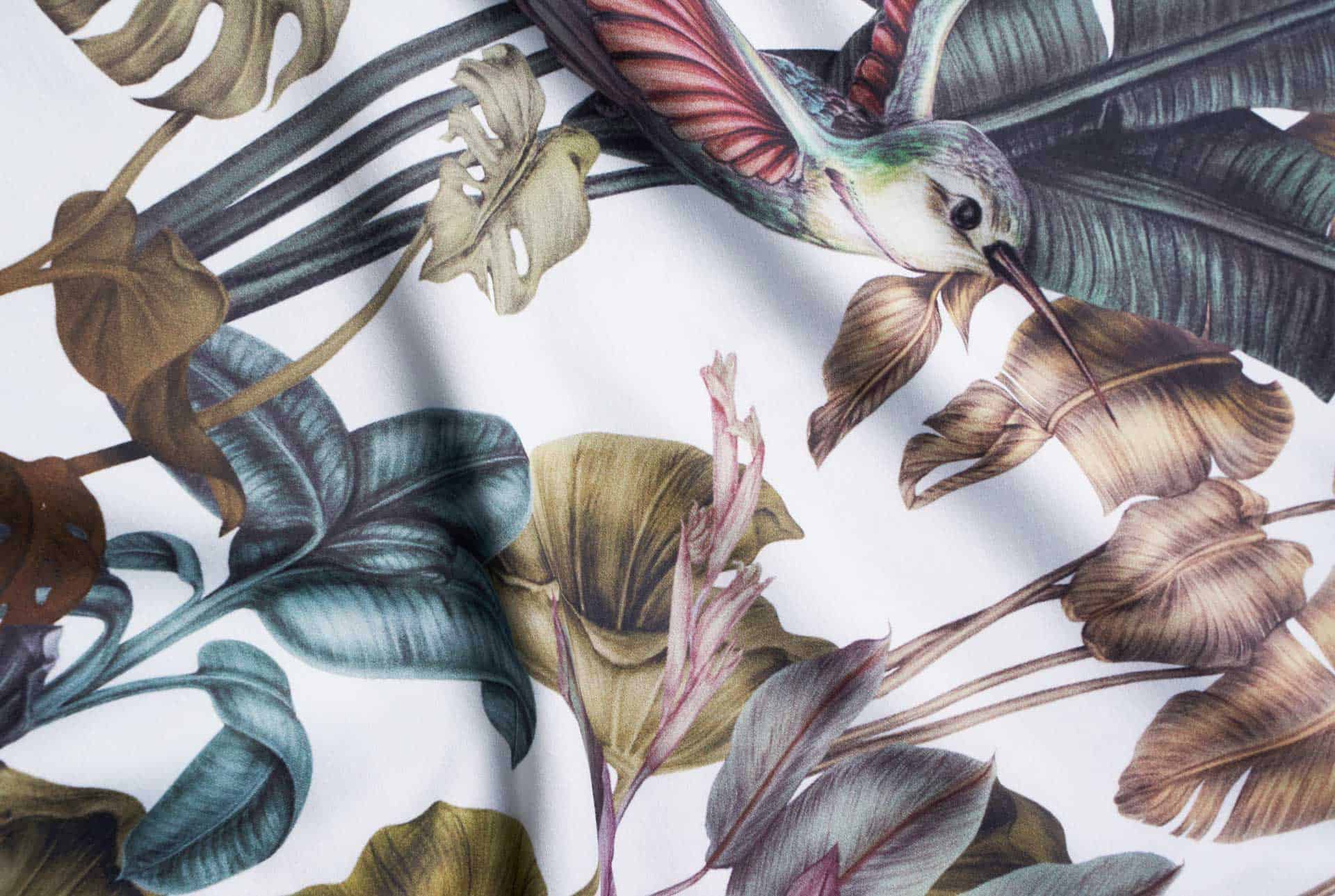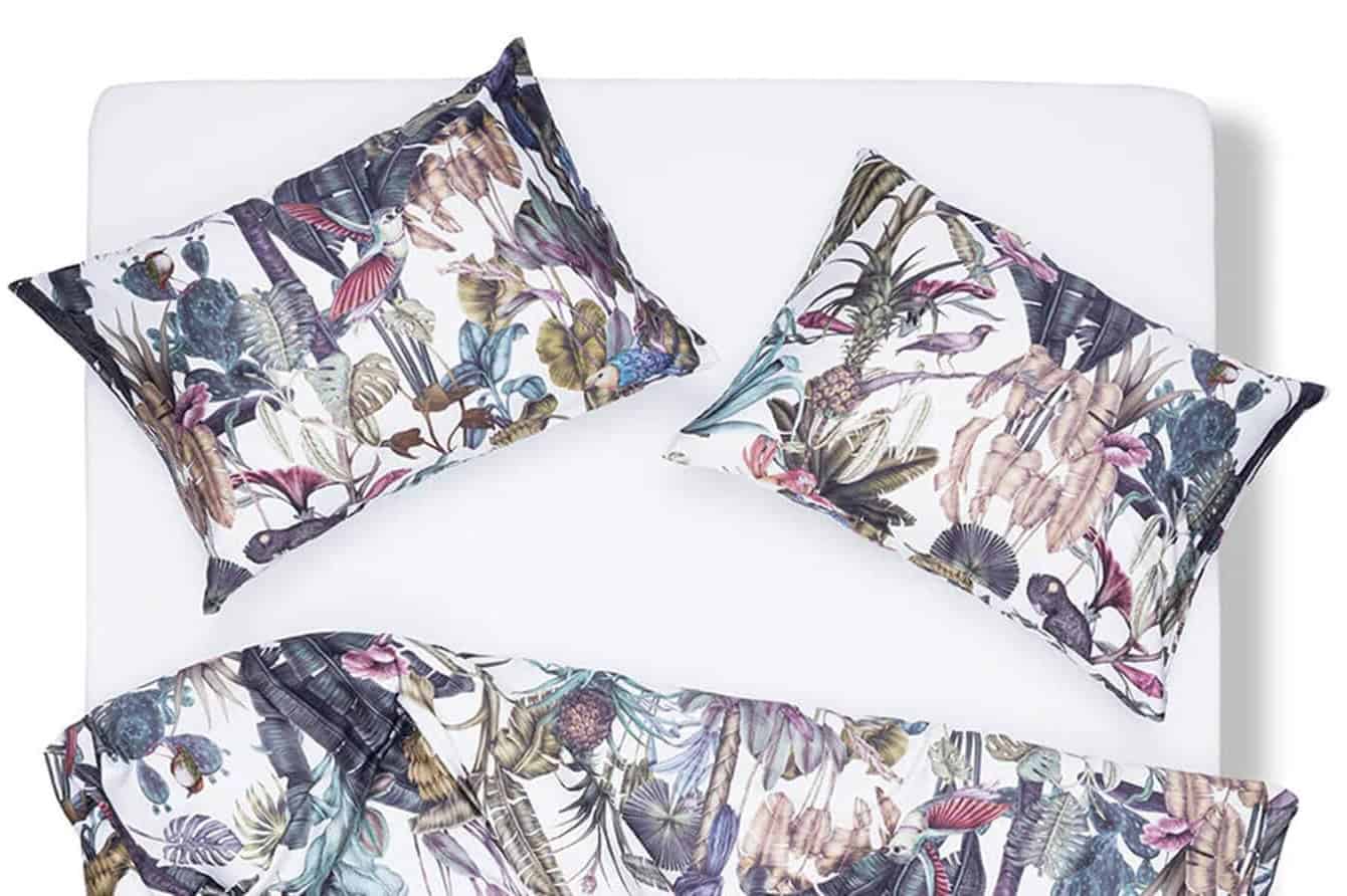 Biancheria da letto in satin di cotone con opere d’arte originali.