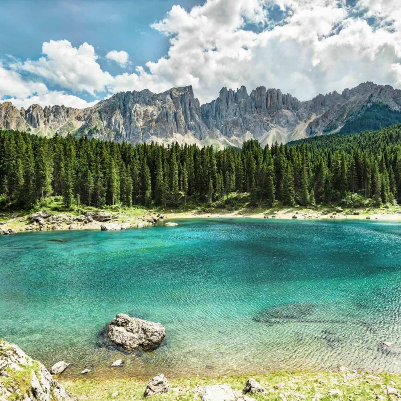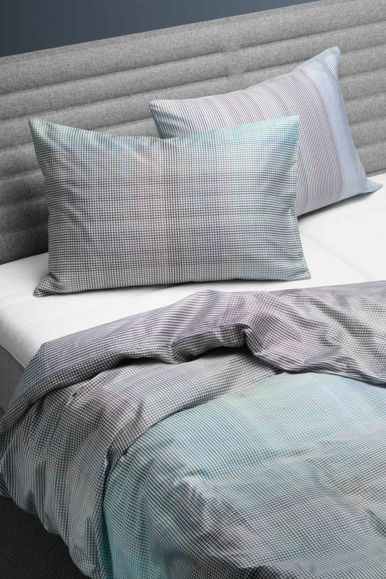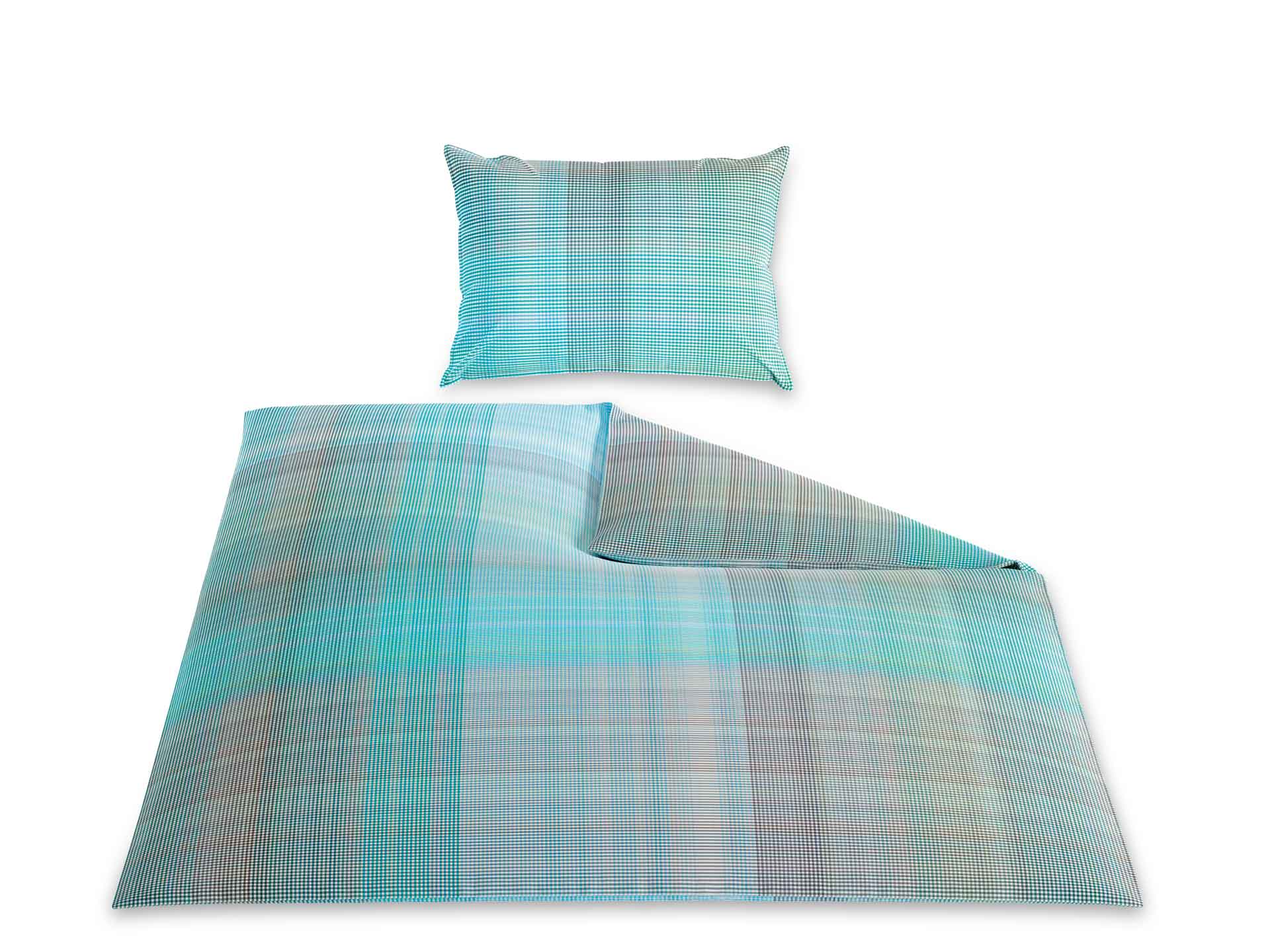 Pregiata biancheria da letto in satin di cotone nei colori di un lago glaciale.