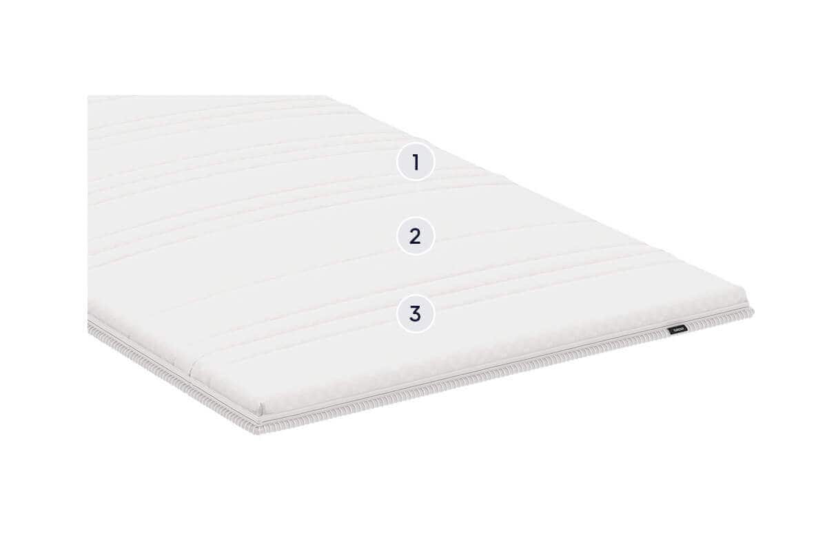 La durata di vita di un topper dipende sempre, naturalmente, dalla sensazione personale, dalla manutenzione e dalla cura, nonché dalla frequenza di utilizzo. Per motivi igienici, si consiglia tuttavia di sostituire il topper al più tardi dopo 5–6 anni.