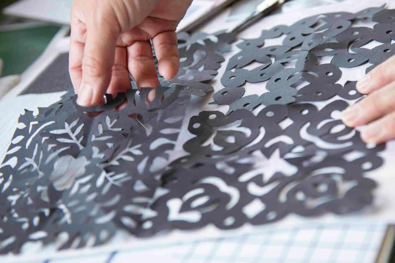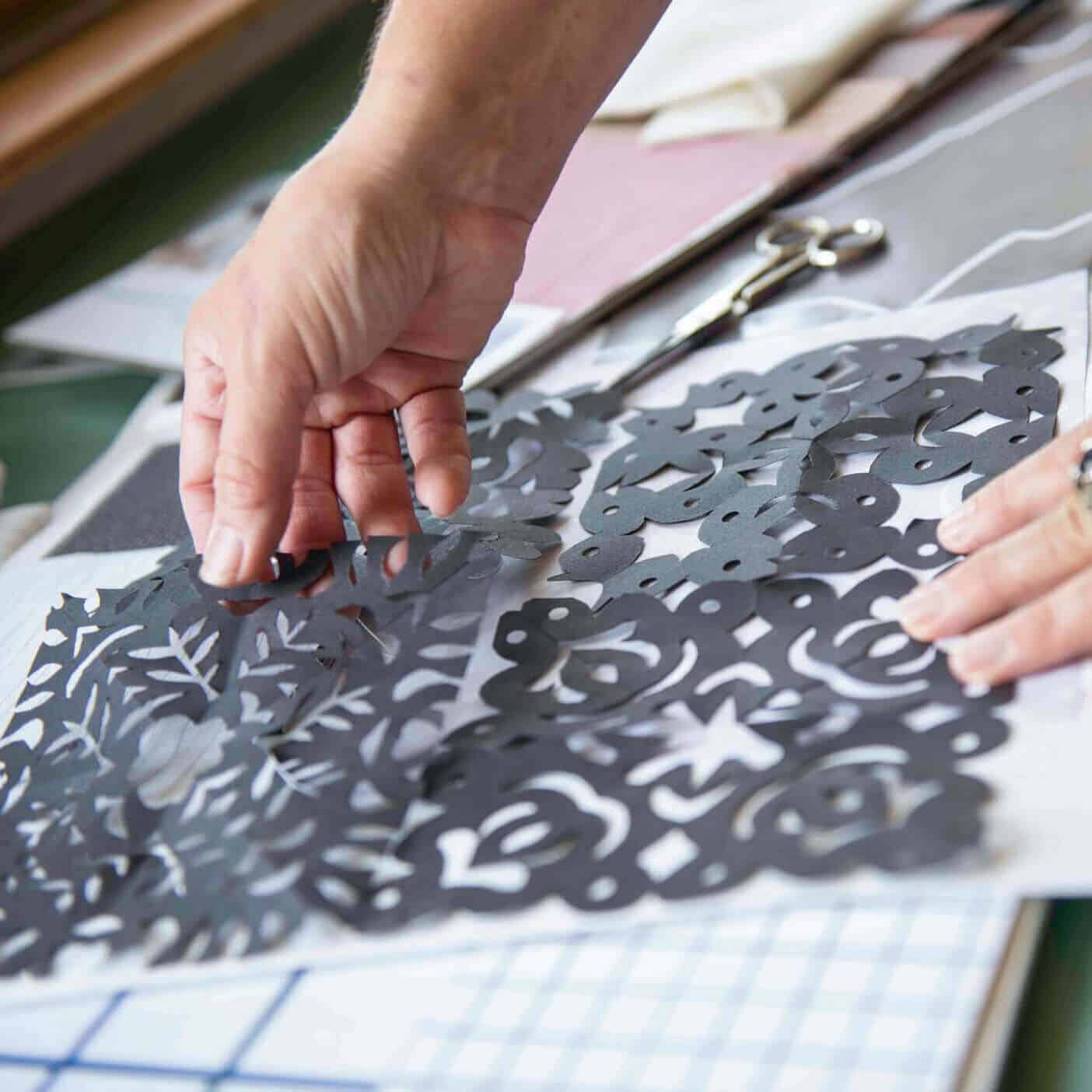 Edle Baumwollsatin-Bettwäsche mit Damastmuster inspiriert vom Schweizer Scherenschnitt.